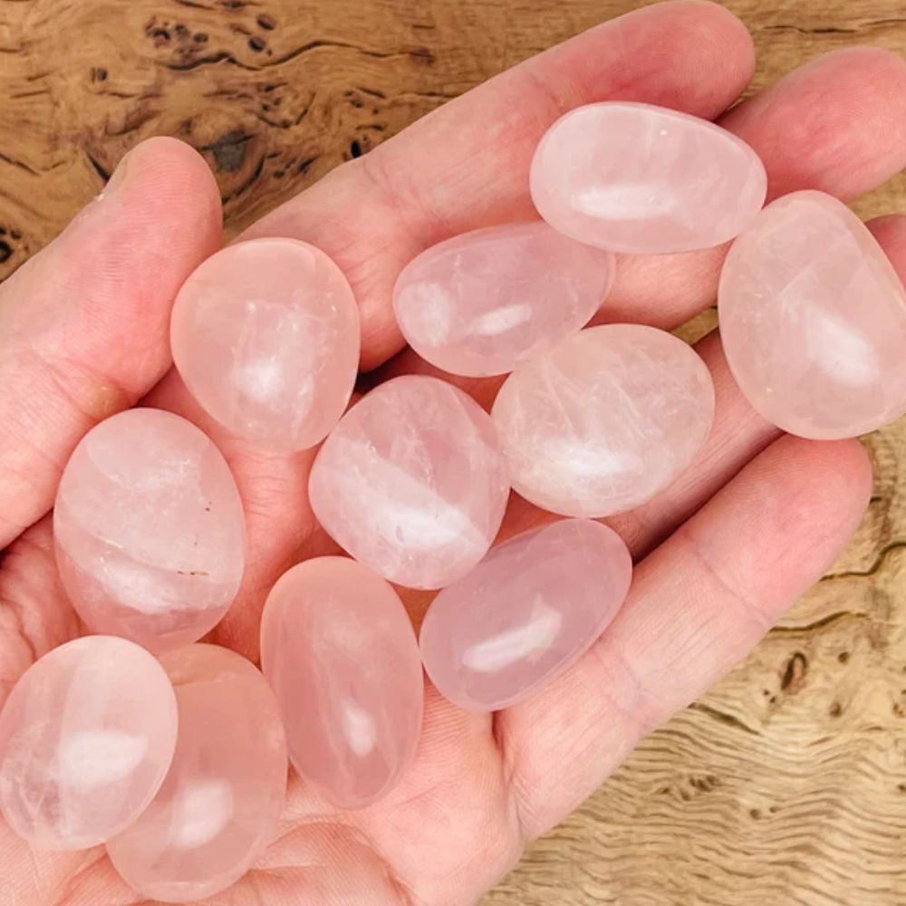 Keeping or using Rose Quartz tumbles helps release emotional stress, heal past wounds, and promote love, trust, and inner peace. They are also known to strengthen self-love, improve relationship harmony, and calm negative emotions such as anger and anxiety.